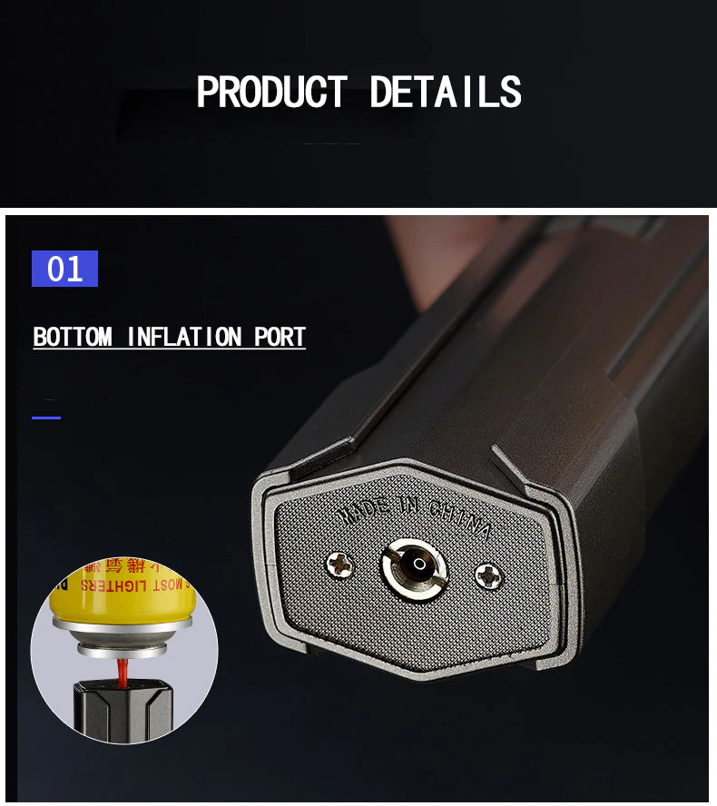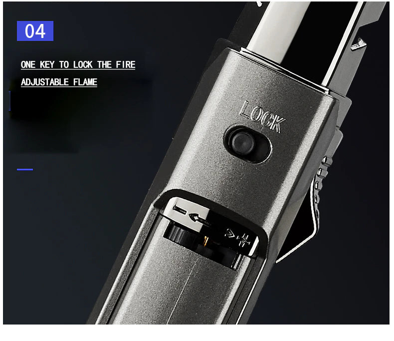 This adjustable jet butane lighter with fully automatic electronic ignition and built-in piezo ignition, can quickly ignite in any conditions, perfect for lighting candles, fireworks, indoor and outdoor use, and is also ideal as a camping lighter. In order to keep a strong flame and prevent clogging of the port, please use high-quality butane for filling.